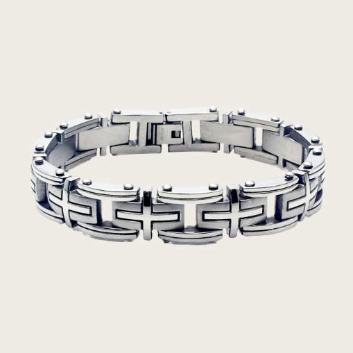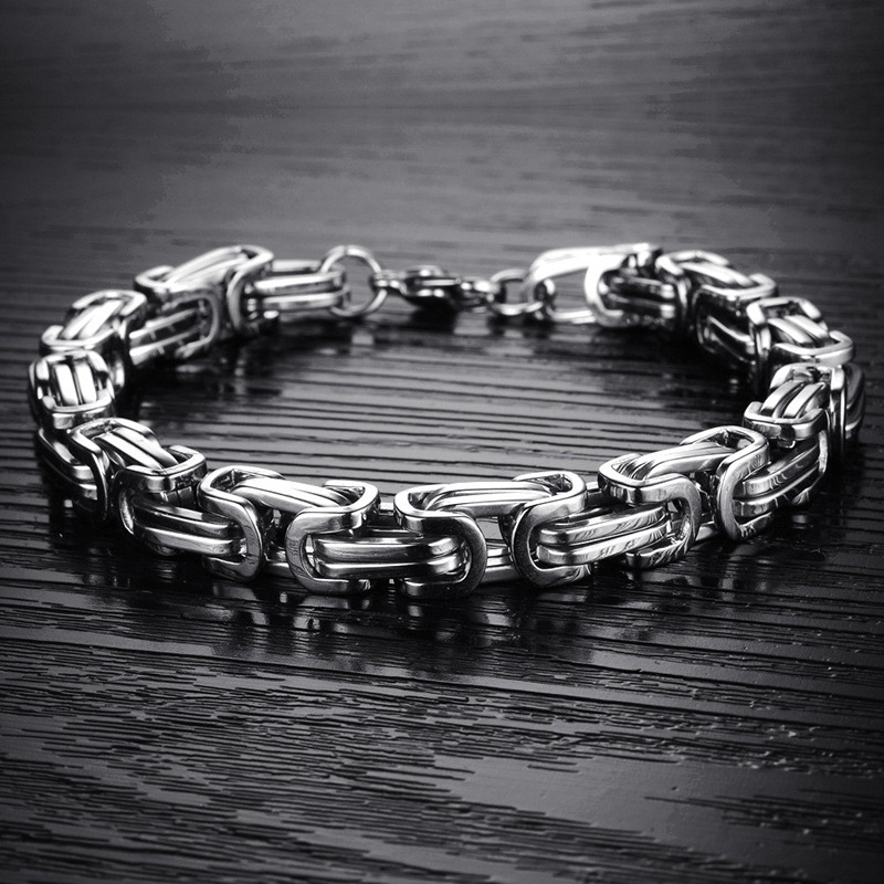 Stainless Steel Titanium Silver Emperor Chain Bracelet